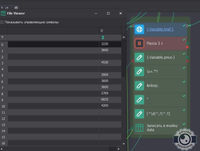 Copy the table with prices into the list. Then count the total number of rows and put the specified values with “+” separator into the variable.