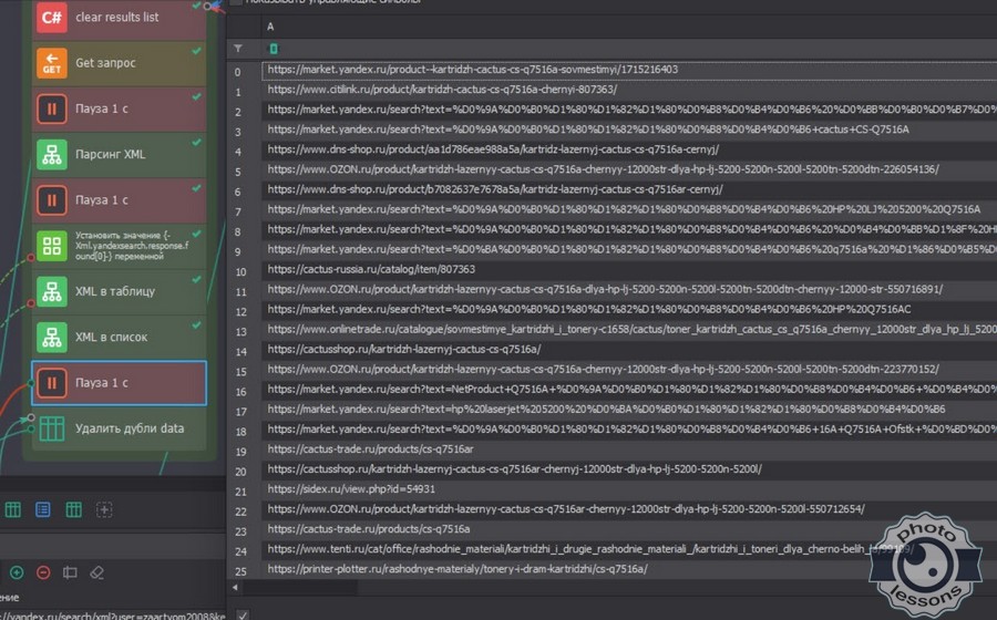 Example of use: search for certain product positions in search results, and then find either the current price for each of the submitted sites, or get from several sites the arithmetic average (by taking the desired number of sites and adding up the cost of products in advance).